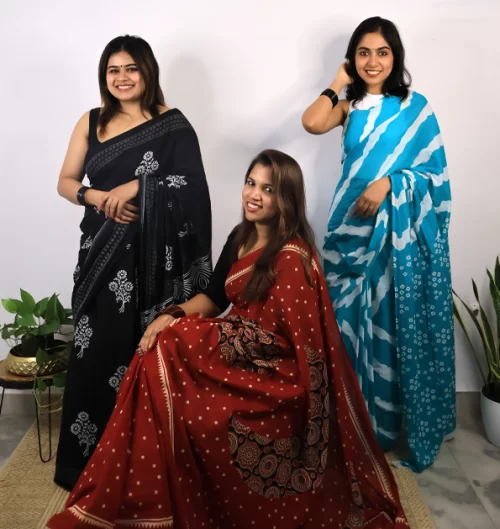 Our brand specializes in curated sarees crafted from various exquisite materials, including Handloom, Silk cotton, Tussar, Mul-Mul cotton. Each saree in our collection is personally handpicked and meticulously crafted to ensure the highest standards of quality and aesthetics.