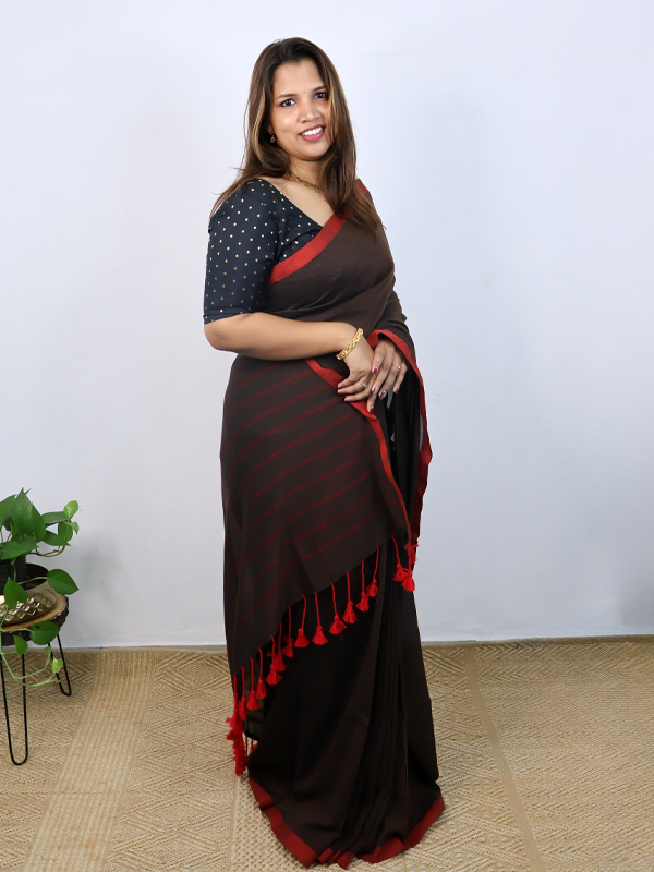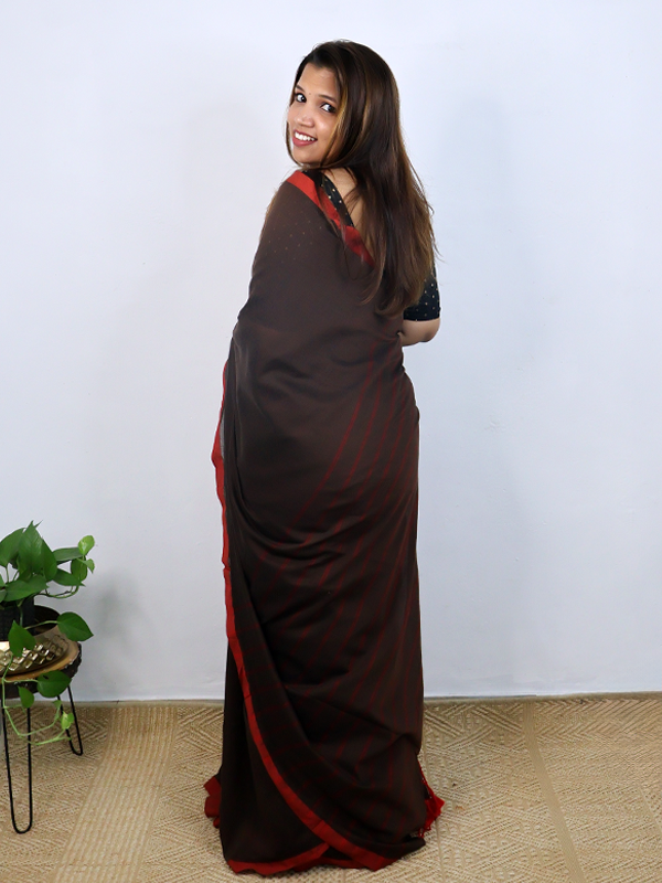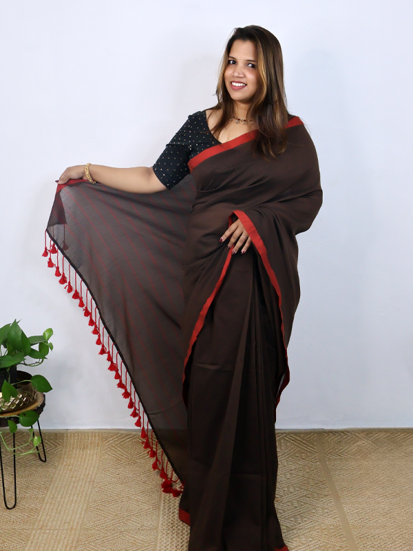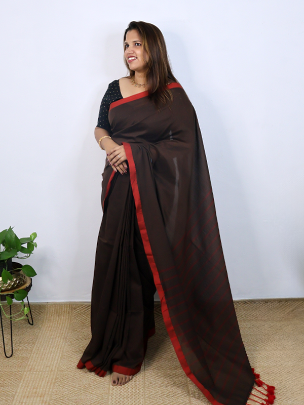 Cocoa brown with red border saree