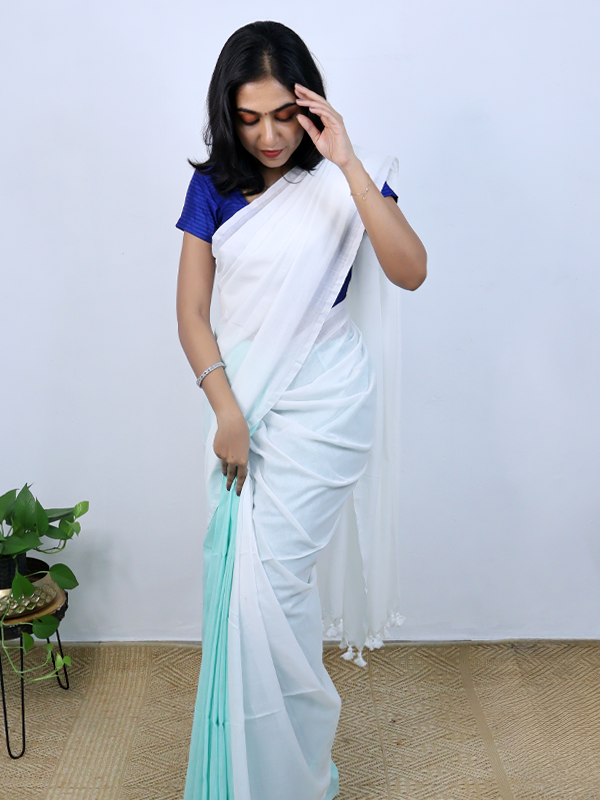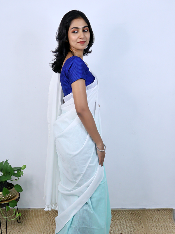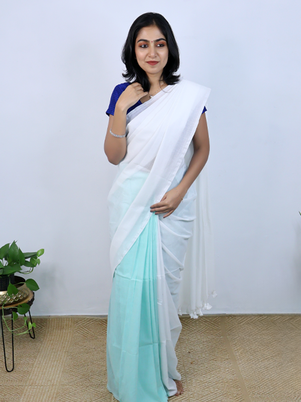 Home Sarees Mul Mul Sthree White & aqua blue saree